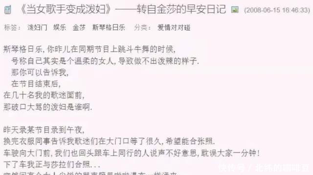2008年,一场突如其来的风波彻底打乱了她的事业节奏。 当时她参加《舞林大会》,因和斯琴格日乐在乘车时发生摩擦。 随后在网上控诉对方辱骂自己,这场口水仗持续了整整三个月。 不仅让金莎积攒的“玉女”人设彻底崩塌,还引来了铺天盖地的负面报道。